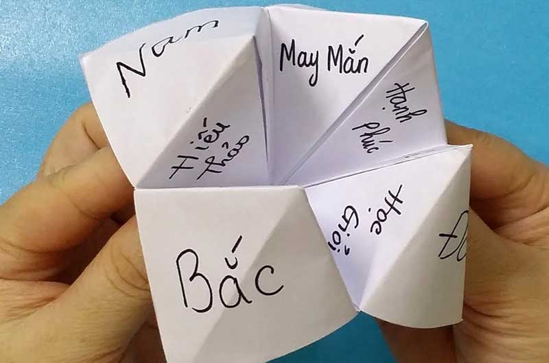 Như vậy chúng ta vừa tìm hiểu qua cách gấp Đông Tây Nam Bắc bằng giấy. Bạn có thể sử dụng trò chơi này để chơi cùng bạn bè, hoặc làm quà tặng thú vị cho người thân. Chúc bạn có những giây phút vui vẻ và sáng tạo với trò chơi giấy này!