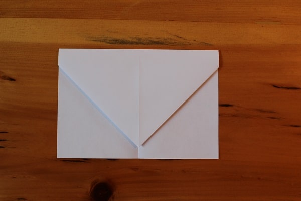 3. Gấp toàn bộ phần trên xuống sao cho nhìn giống như một chiếc phong bì. Đảm bảo bạn chừa lại khoảng 1.2 cm ở mép dưới — đừng để mũi trên chạm sát mép giấy dưới.