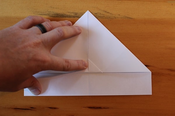 5. Gấp phần tam giác nhỏ đó lên để cố định các nếp gấp bên trên.