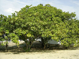 Cây điều là một loại cây thường xanh có rễ cọc sâu, được trồng để lấy quả ăn hạt. Cây điều có thân chính phân nhánh và tán lá hình vòm đặc trưng. Tán lá mỏng của cây chỉ giới hạn ở đầu cành và bao gồm những chiếc lá màu xanh đậm bóng, hình bầu dục và thuôn dài.