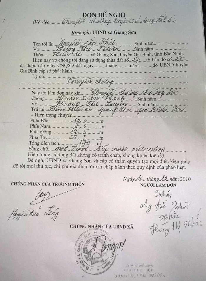 Lưu ý: giấy chuyển nhượng đất viết tay nếu không được chứng thực tại phường xã. Sau đó đăng ký sang tên tại văn phòng đăng ký đất đai thì coi như không có giá trị pháp lý.