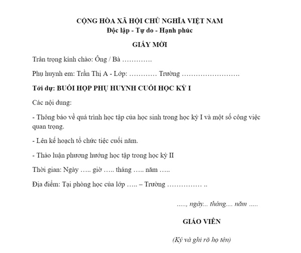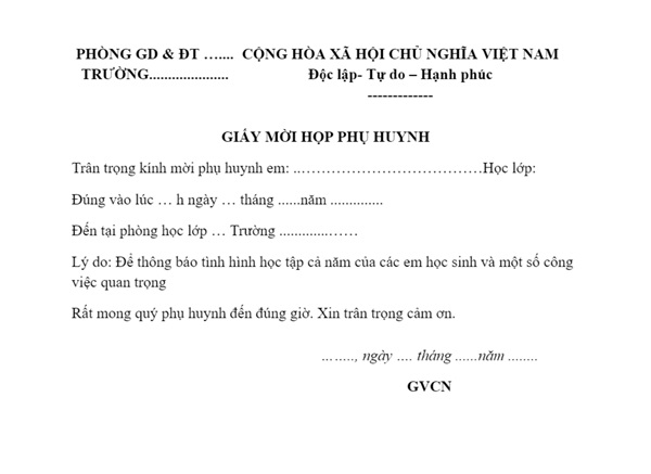1. Tìm hiểu về định nghĩa mẫu giấy mời họp phụ huynh