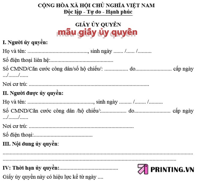 - Mẫu giấy ủy quyền nhà đất, tài sản (làm sổ đỏ, mua bán đất, sử dụng tài sản)