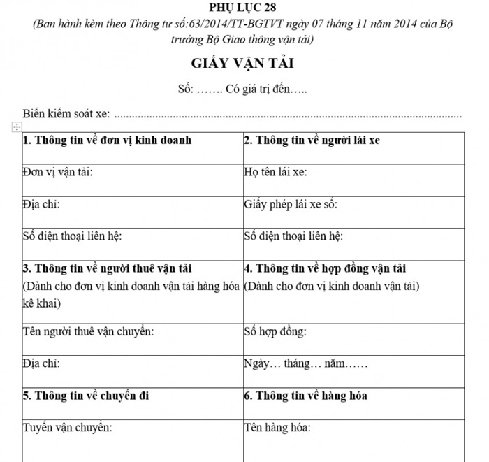 Tải mẫu giấy vận tải file word, exel mới nhất 2025